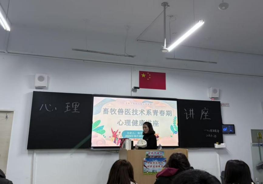为帮助2025级新生筑牢心理健康屏障、快速适应校园生活,10月28日晚,畜牧兽医技术系心理拓展部在教学楼A207举办的《青春期心理健康讲座》顺利结束。活动特邀专业人士陆华老师主讲,2025级动物医学班,2025级动物营养与饲料等6个班级的72名同学参与,现场氛围热烈,收获颇丰。