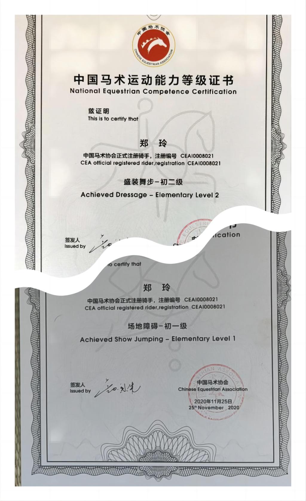优秀毕业生--郑玲,中国马术协会正式注册骑手